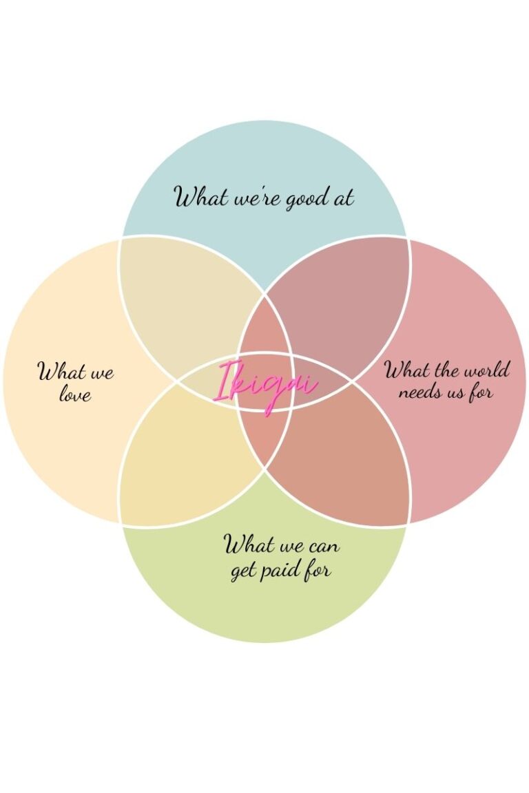 - Discover our ikigai: We can use our “why” to create ikigai. Our ikigai is the intersection between what we love, what we’re good at, what the world needs us for, and what we can get paid for. To create our ikigai, we need to start with each of the four main areas of the circle. We can write about activities and topics we enjoy and things we are good at.